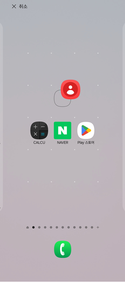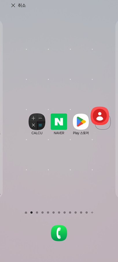 앱을 원하는 위치까지 가져왔다면, 이제 손가락을 떼면 됩니다. 그러면 연락처 앱이 그 자리에 고정돼요.